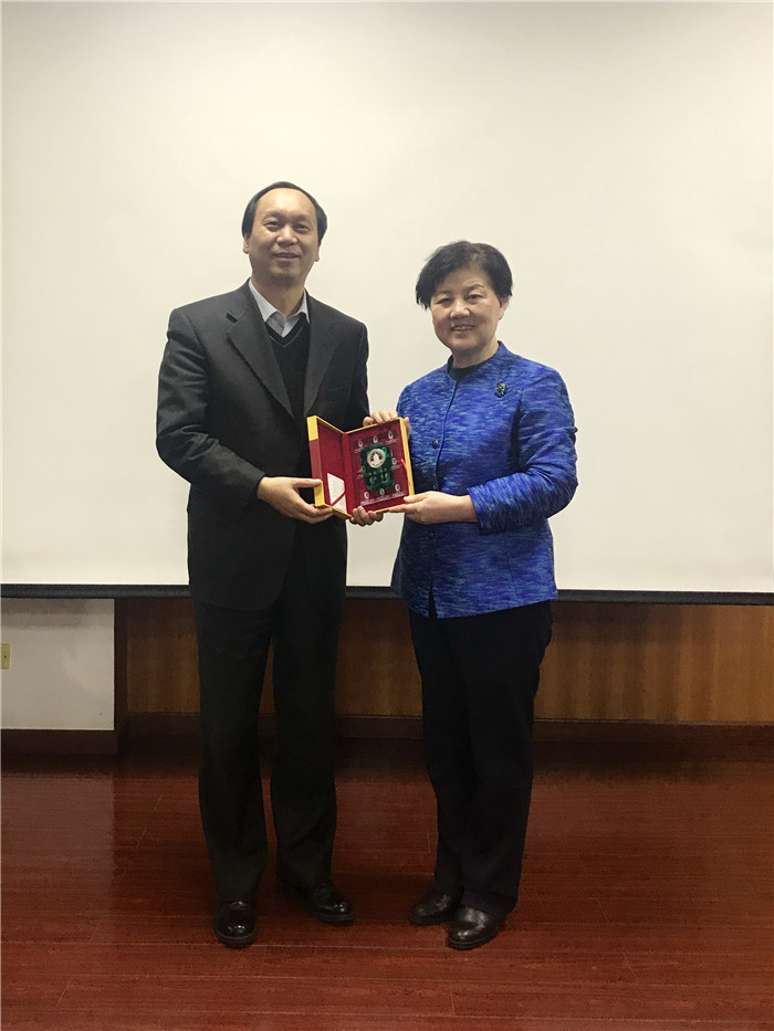 董事长翟日强向马玉玲主任赠送纪念品