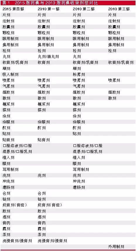第四部的制剂通基本涵括了2010年版三部药典的附录制剂通则,如表1所示,在定义上更是涵括了2010年三部药典附录。